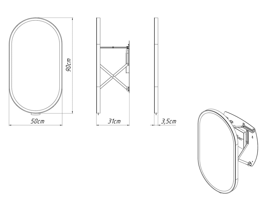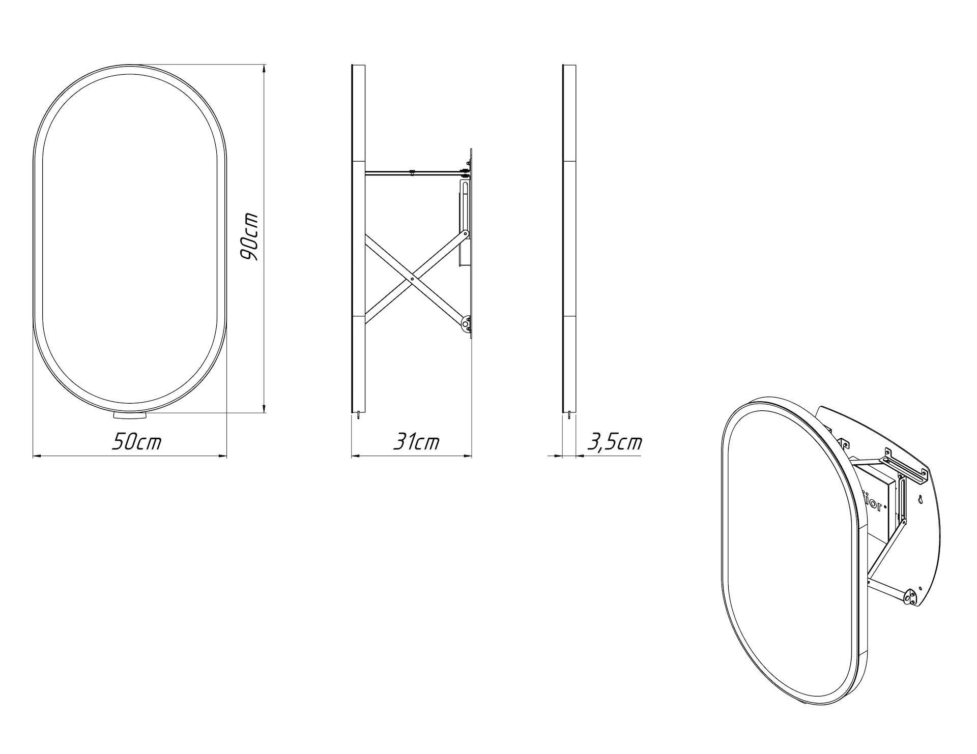 Ovo. 5090 lustro wysuwne owalne pionowe z LED i ramką